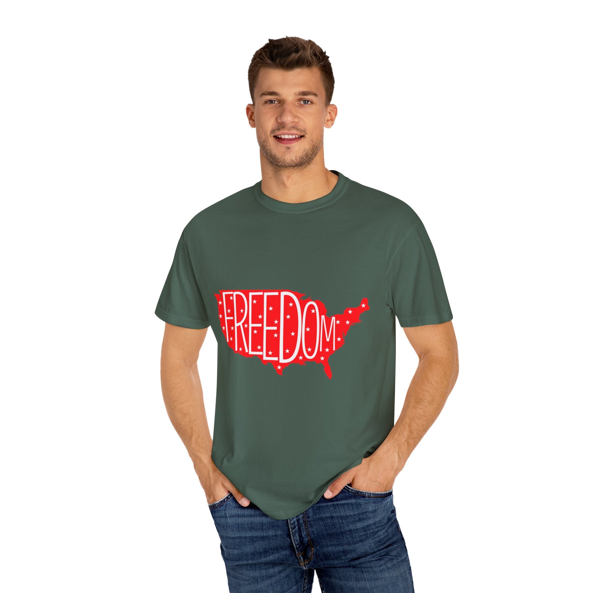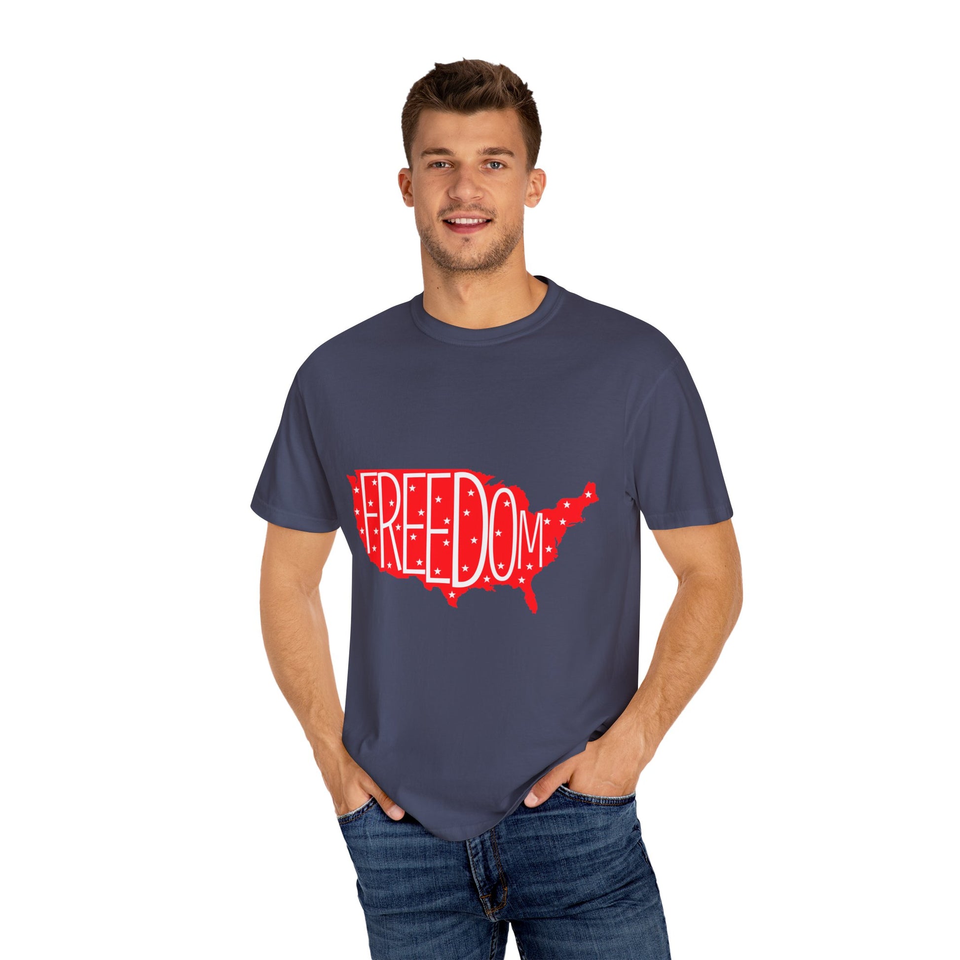 Freedom USA Unisex Garment-Dyed T-shirt, Casual Tee, Independence Day Apparel, Patriotic Shirt, Gift for Americans, USA Pride